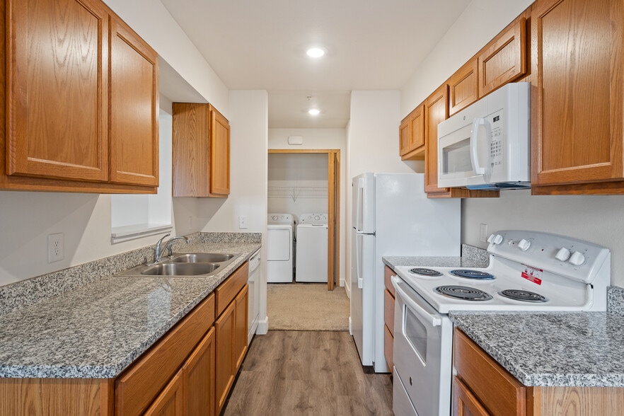 Experience the comfort of Coopers Landing Apartments, just 10 minutes from downtown Kalamazoo. Our spacious homes offer walk-in closets, in-unit washers and dryers, private patios or balconies, and select upgrades like vaulted ceilings and granite countertops. Every apartment includes an attached or detached garage, with water, sewer, and trash removal included.