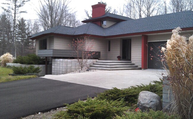 Executive Rental for the Mid-Century enthusiast. Custom built ranch with natural light is pouring in the walls of windows and gleaming off the polished hardwood flooring. As stunning as this 3-bedroom, 2 full bathroom rental home is the property is even more so. The property is 10 acres with with a mixture natural and planned landscaping. The pond is available for swimming, fishing or glazing. The home features storage built in through out, no dressers or desks needed in these bedrooms.