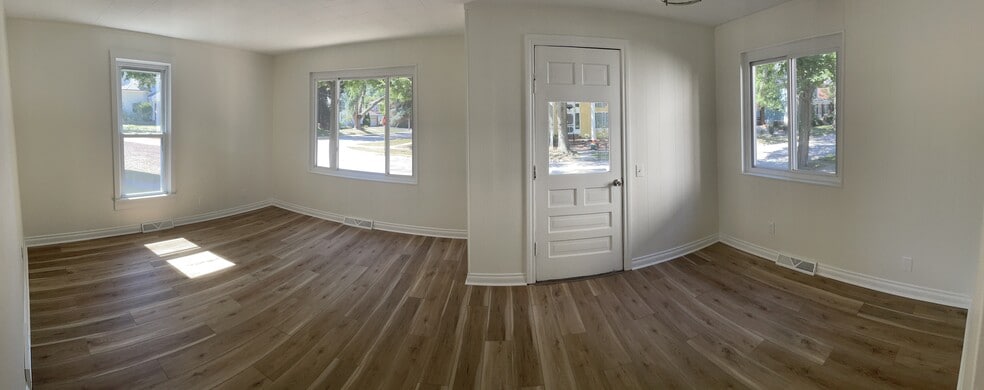 Second bedroom with multiple windows looking down State Street