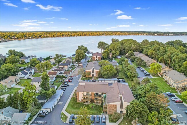 Lake Living can be yours on Walled Lake! Easy living in this remarkable and very sought after condo community (Shoreline) with it's own dock, beach and picnic area right on the waterfront. Beautiful updated and turnkey condo with many features: walk right in and see the lake views, all luxury plank flooring (no carpet), open floorplan from kitchen/dining/living room with 9ft door wall leading to the extra long spacious entertaining balcony with stunning views of Walled Lake, oversized bedroom with a dual entry bath and large closet, bedroom with access to the sprawling deck overlooking the lake, 1 car detached garage with electricity and garage opener, newer dishwasher, stove, washer. (measurements approx, some photos edited and/or virtually staged) HOA fee includes water and trash. (dock is waitlisted and additional fee) Owner Occupants Only - rentals are capped.