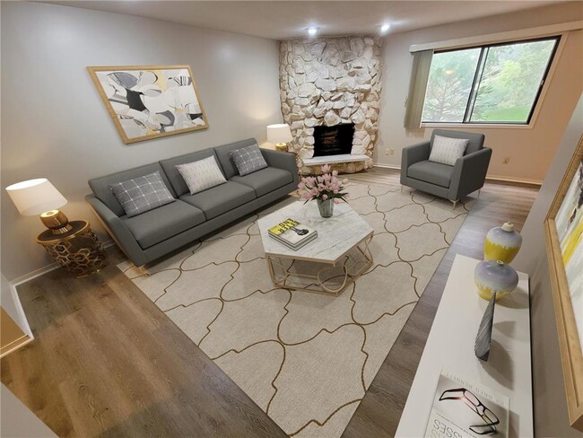 **Brand new primary bathroom 3/4 shower as of 1/12/24 - not pictured yet** Recently painted, hardwood flooring. fireplace, screened in porch, patio, walkout to creek, pool, one car garage stall with additional storage. Great location, quiet building Tennent pays: Water, Gas, Electric