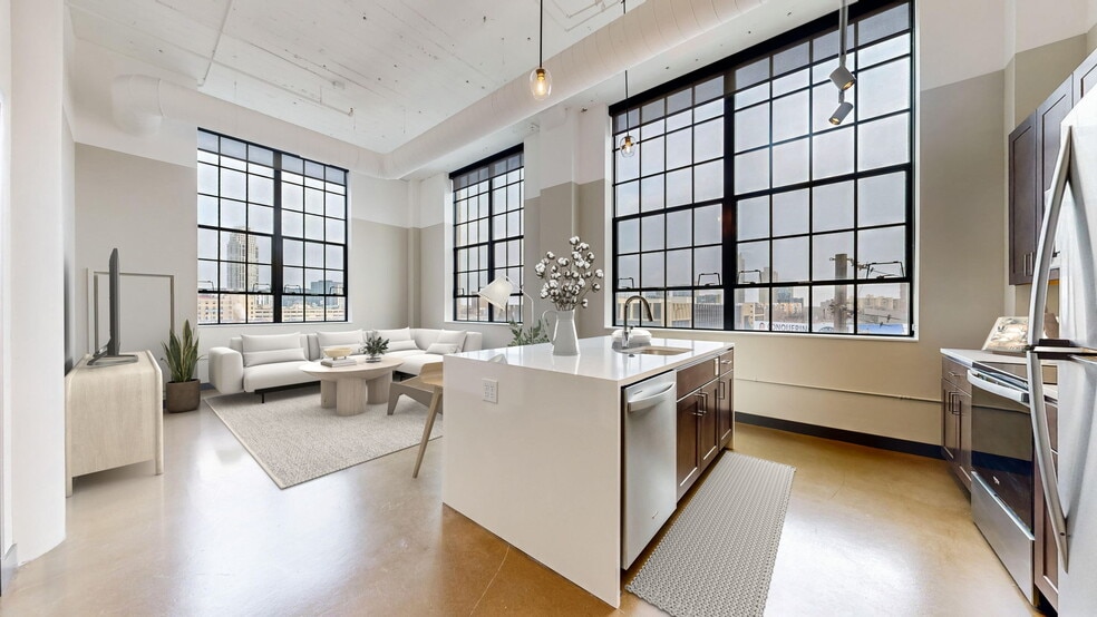 1010 Lofts was originally built in 1923 as a garment factory for the Strutwear Knitting Company, undergoing subsequent expansion from 1923 to 1930. In 1987, the building underwent a remarkable transformation into the operational headquarters for Marquette National Bank. This redevelopment included notable upgrades such as a striking new facade and the addition of a magnificent six-story atrium on the 7th Street side. Those beautiful upgrades have been utilized to create unique modern loft homes with historic charm.?