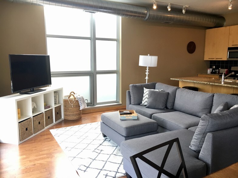 Spacious 2 BR Lumen on Lagoon loft w/ high ceilings, large windows, open kitchen w/ granite and stainless steel. Private covered balcony. Master suite with 2 closets walks through to full bath. Great uptown location near shopping, restaurants, and entertainment! - underground, heated parking spot INCLUDED - in unit washer dryer - central air and heat - eco Nest thermostat - trendy kitchen with granite countertops, gas grill, refrigerator/freezer, dishwasher - balcony - lots of floor to ceiling windows - open floorplan - front door security/ callbox - built-in in the closet - large lockable storage unit in the basement as well as other storage - pet friendly but must interview and there is a separate pet lease and one time fee - utilities included in rent: water, sewage, garbage *Option to have apt fully furnished for a small additional cost! *Option for 12-month lease