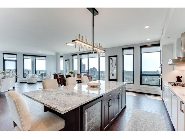 Mill District penthouse with stunning views, amazing finishes, and an incredible balcony now available at Legacy Condos! This open and modern 2BR+ Den features walls of windows facing the south and east, rich dark hardwood floors, and an open concept floorplan perfect for entertaining. Gourmet kitchen has top of the line appliances, beautiful backsplash, and tons of countertop space and cabinetry. Both luxurious bedroom suites provide stylish bathrooms and walk-in closets with custom built-in organizers. You’ll love the large, covered balcony with unmatched views and a natural gas grill hook-up. Legacy Condos is nestled steps from Gold Medal Park and the riverfront while providing resort level amenities: pool & jacuzzi deck; separate community deck with lawn games, grilling stations and fire pits; massive community room; cardio center with sauna; separate weight room; playground; game room with golf simulator; indoor/heated guest parking; and 24/7 front desk staff. Included with rent: 2 indoor heated parking stalls, water/sewer/trash, gas, heat & A/C. Tenant responsible for electricity and basic cable & internet package for $65 per month. Application fee: $78 per adult, Admin Fee: $150, HOA Moving fee: $700. Occupancy fee is $175 per lease. Deposit is one month's rent.