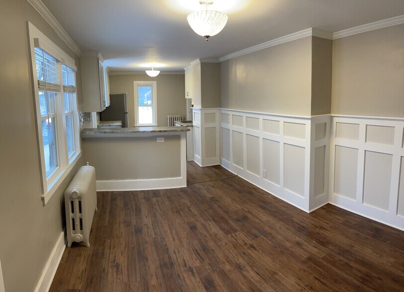 Spectacularly remodeled upper two bedroom duplex with private entrances, front porch, yard space and Laundry included. Everything brand new in this amazing remodel. Open layout kitchen with new cabinets, Granite countertops with bar top, stainless appliances, with dishwasher, gas convection oven and 5 burner grill top. New flooring throughout, designer light fixtures and ceiling fans, custom ceramic tiled bathroom with Claw Foot Tub, Pedestal Sink, designer Mirror, and TOWEL WARMER. Ample closet space with extra storage in basement.