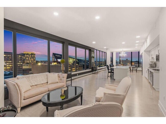 Enjoy stunning skyline views with 3 walls of windows, custom finishes and everything included except electricity. You’ll love the hardwood floors, custom built-ins, upgraded lighting, gas fireplace, large balcony with natural gas grill hook-up, open floorplan with bedrooms on opposite sides, and full-size washer & dryer. Kitchen features massive island, stone countertops, custom-tiled backsplash, gas oven, and stainless steel appliances. Owner’s suite has black-out shade on tracks, smartly designed walk-in closet, and dual-vanity bathroom. Portland Tower has onsite professional management, fitness center, community room, community patio, secure package room, and indoor/heated guest parking. Included with rent: 2 parking stalls, 1 storage unit, basic cable & internet, and water/sewer/trash. Tenant responsible for electricity. App Fee: $78 per adult; Admin Fee: $150; HOA Move-in Fee: $600; Security Deposit is One Month’s Rent.