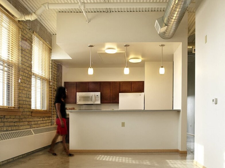 Loft-style apartments boast floor-to-ceiling windows, stunning views and original features. Renaissance Box was originally designed to welcome local artists. The entrances are intentionally large for moving artwork, and the common spaces are decorated with multi-media work to create an inviting space for all residents. Welcome to your charming and historically renovated home!