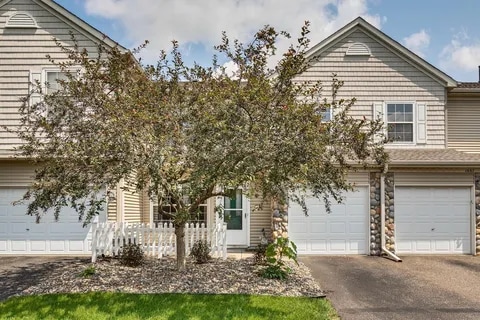 Property Id: 1588407 Terrific location close to playground, walking trails, plus dog park. Enjoy your summer on the west-facing patio that overlooks green space.The living room features updated vinyl floors that create a warm and inviting space. The kitchen, open to the informal dining area and living room, includes a breakfast bar, new faucet, disposal, and all new stainless appliances are ordered (del. 8/16/24). The main level also has a half bath. Upstairs, you'll find a full bath with a large soaking tub and a separate tiled shower. The two bedrooms include a primary bedroom with a large walk-in closet. Conveniently, the washer and dryer are located on the upper level near the bedrooms. Includes water and sanitation.Updates include: Washer, Dryer 2022, some new light fixtures 2022, 2024. flooring main and upper level including upper level bathroom tile, plus new vanity 2022, blinds full house 2022, New Roof and Siding 2023, Garage door plus rails 2024.Moundsview Schools. Easy Commutes. No pet fee