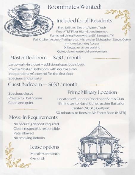 Property Id: 2303885 Private master bedroom with walk-in closet and private ensuite bathroom in a quiet, owner-occupied home in Gulfport. Utilities and high-speed internet included. Shared kitchen, living areas, and laundry. Secure electronic entry, central HVAC, and convenient location. Ideal for a responsible professional. Pets considered with approval and additional terms.