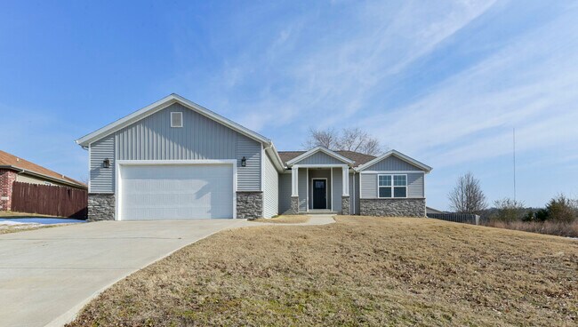 This stunning home offers a prime location just moments from the renowned Branson Landing. Featuring 3 bedrooms and 2 bathrooms, the home provides ample space with a thoughtfully designed, open floor plan that's ideal for both everyday living and entertaining. Modern finishes throughout give the interior a clean, contemporary feel. The kitchen is a standout, complete with stainless steel appliances and generous counter space for all your culinary needs. The primary suite is a true retreat, boasting a custom tiled shower, jetted tub, dual vanity, and a spacious walk-in closet. Conveniently located near Holiday Hills Golf Course, this home combines comfort with accessibility. Dogs are negotiable with a $400 non-refundable pet fee. No smoking.