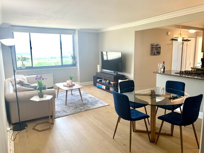 Enjoy easy downtown living in this 2bd/2ba condo. On the 16th floor, this corner unit comes with incredible views of the Missouri River. Rent includes all utilities, basic internet, 2 covered garage parking spots, an in-building storage unit, access to 4,000 sq.ft. indoor gym with cardio and weight equipment, rooftop pool access, and indoor theater/gameroom. The building is pet friendly and has a dedicated pet park. Feel safe with gated entry and 24hr concierge/security. Perfect location for incoming medical students or residents with close proximity to hospitals/University of Missouri Kansas City School of Medicine and University of Kansas School of Medicine.