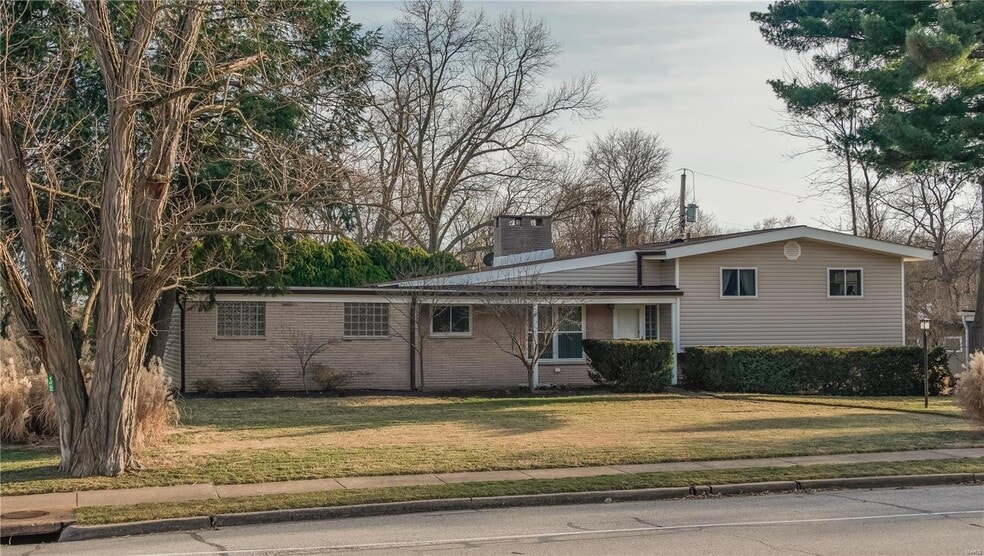 DETAILS: Beautiful mid century modern ranch in Ladue School District. Open Floor plan. Recently refinished hardwood floors throughout main level and 3 bedrooms. Large floor to ceiling windows in cathedral ceiling featured in living /dining room. Cathedral ceiling in the spacious eat in kitchen, double ovens handsome appliances. Lower level walkout to patio and fenced backyard. Updated baths. Large basement bonus room with concealed stacked laundry and spacious closets, could be converted into a 4th bedroom and laundry moved to the furnace room area. 2 car garage with storage area.