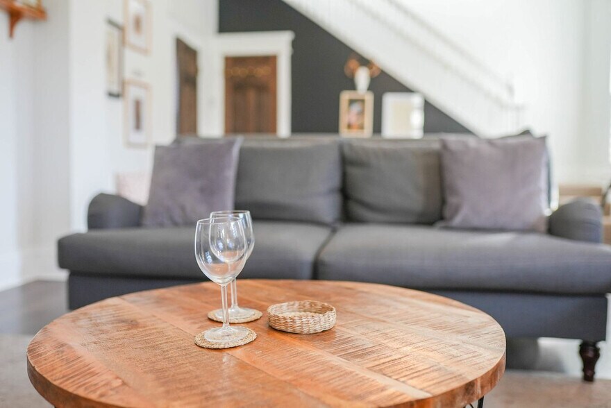 Experience St. Charles from your own historic farmhouse. This charming 19th-century farmhouse offers four bedrooms and three baths, making it perfect for families and groups. Enjoy the twinkle-lit backyard with a fire pit and patio for relaxing evenings. The fully stocked kitchen and spacious dining area are ideal for home-cooked meals. With a dedicated workspace and fast Wi-Fi, this home is remote work-friendly. The pet-friendly fenced yard allows you to bring up to two dogs, with a fee applicable. Located within walking distance to Main Street shops, cafés, and the Katy Trail, this farmhouse offers a perfect blend of vintage charm and modern comforts. Step into your own piece of history in the heart of Frenchtown. This beautifully restored farmhouse blends vintage charm with modern comforts, offering a warm and inviting retreat for up to eight guests. The main floor features a king bedroom next to a full bath with a walk-in shower. Upstairs, the primary suite includes a king bed and a private bath with a clawfoot tub and walk-in shower. Additional bedrooms include another king bed and a queen bed, with a shared upstairs bath featuring a tub/shower combo. The fully stocked kitchen offers stainless appliances, a spacious island, and all the essentials for preparing delicious meals. Gather around the dining table or relax in the cozy living room with plush seating and a smart TV. Your private fenced backyard features twinkle lights, a fire pit, a BBQ grill, and plenty of seating, making it a perfect space for morning coffee or evening s'mores under the stars. Pets are welcome, with up to two house-trained dogs permitted for an extra $75 per pet per stay. Free on-street and off-street parking is available, making it simple to arrive by car. Welcome to St. Charles, Missouri, nestled in the historic Frenchtown district. The neighborhood offers the perfect blend of small-town charm and modern convenience. You're just blocks from Main Street’s cobblestone streets, lined with boutiques, cafés, breweries, and the Katy Trail along the Missouri River. Nearby attractions include the Lewis & Clark Boat House & Museum, unique stores and eateries, Lindenwood University, Family Arena, and Historic downtown St. Louis. The Katy Trail and Missouri Riverfront are perfect for biking, jogging, and scenic strolls. Whether walking, cycling, rideshare, or driving, it’s easy to explore St. Charles and beyond from this central location. The property is about 25 miles from St. Louis Lambert Airport, approximately a 30-minute drive. Main Street and the Katy Trail are both within a short walk. The property is equipped with a noise monitoring device for the comfort of all guests and neighbors. Quiet hours are from 9 PM to 8 AM. Smoking or vaping inside the home is prohibited, and no parties or events are allowed. Respect check-in after 4 PM and checkout by 10 AM times. Starter supplies like toilet paper, paper towels, and toiletries are provided to get you started, but guests may need to purchase additional supplies for extended stays. A personalized door code will be sent before check-in for a smooth arrival. Verification of contact information and acknowledgment of house rules are required before check-in instructions are provided. Enjoy access to laundry facilities in the garage, high-speed Wi-Fi, and a dedicated workspace for remote work. A laptop computer is not included. Registration Number: 2024-23-5799 [SI]