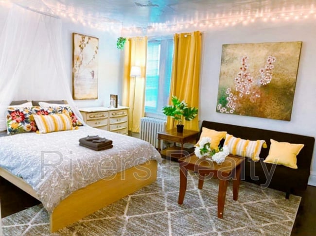 From the front door, the large living area welcomes you in and provides for several different decorative options. Off of the main room, you'll walk into the dining area directly off of the recently rehabbed kitchen! Enjoy all the amenities most people ever need including stainless steel appliances, great countertop space, built in microwave, dishwasher, garbage disposal, fridge, & gas stove. Returning to the main room, you'll take the second hallway to get to your closet or potential office space that then leads to the bathroom! Bathroom comes with delicately placed tile, bathtub, vanity and large medicine cabinet. There's ample closet space inside the unit with possible storage in the basement. Enjoy gorgeous wood floors throughout, plenty of charm with the stucco walls, arched doorways, & original doors all contributing to it. The building provides an on-site laundry facility, gated garage parking & on street parking directly in front. Conveniently walk to Forest Park, downtown Dogtown, or Clayton Demun neighborhood. Not to mention the proximity to all major highways, universities and hospitals, restaurants, and stores. Washington University, Clayton, Hospitals, Saint Louis Zoo, Tower Grove Park, Missouri Botanical Garden, St. Louis Science Center, and more! 1-year lease and one-month security deposit (dependent on credit score) No dogs / NO SMOKING! Cats okay ($25 monthly fee/pet + $100 REFUNDABLE pet deposit) Additional monthly utility fee of $100 covers water, sewer, trash, gated parking access, and security systems. Photos & Video are of a comparable unit. Some fixture may be different Prequalify & schedule a viewing directly online at your convenience! Contact the Rivers Realty Team +1 Amenities: Laundry On site, gated garage, heat included