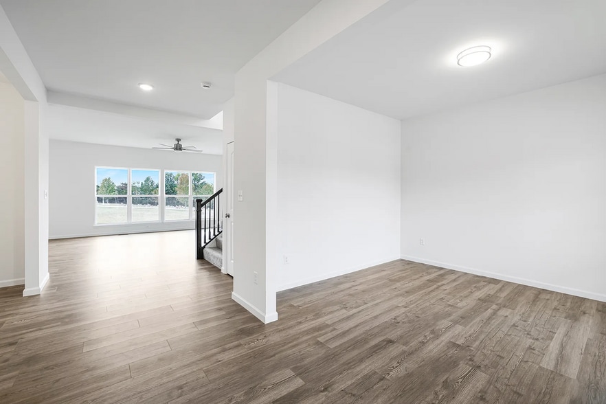 Nottingham 2-story home, with 4BR, 2.5BA is AVAILABLE NOW! This charming property features a 3 car garage, 9ft ceilings, 6ft windows & wood laminate flooring throughout the main floor. The kitchen is equipped with quartz countertops, Brellin White 42 tall cabinets, center island with a breakfast bar, stainless-steel GE appliances & walk-in pantry. There is a spacious great room with a window wall & ceiling fan, plus a formal living room & dining room. Upstairs you'll find the master suite with a spacious walk-in closet & private bath with a walk-in shower, large tub with a window, & dual vanity. Three more bedrooms, hall bath & laundry room add convenience. Dual zone HVAC, two panel white interior doors, garage coach lights, & more! Boone Ridge is the perfect blend of suburban convenience and small-town charm with local dining and entertainment. Contact us today to schedule a viewing! Your new home in Truesdale awaits!