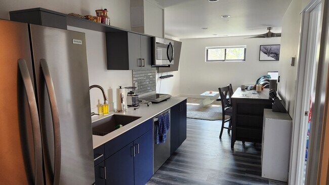 This is an above garage private access ADU with one large bedroom plus a queen flat/dining area, kitchenette, living area, one-car garage plus on street parking. It comes fully furnished (bedroom furnishings available) with ALL utilities included. Amenities include an 85 inch 4k TV with premium cable TV and ultra high speed internet. Just 5 minute walk to the heart of downtown Bozeman! Negotiable lease term. All utilities included- trash, water, sewer, power, internet, cable. The main house is a vacation rental so you must be considerate and quiet at night, absolutely no gatherings or parties allowed. Must pass credit and background check. No smoking or pets. I'm also open to a rooming agreement for a reduced rate.