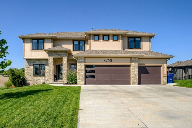 To schedule a tour, please select "Request a Tour", "Check Availability", or "Email Property". Inquiries will be responded to within 48 hours OR when property is ready for showings. To apply, please visit Do not apply on any third party website. Welcome to a beautifully designed 6-bedroom, 3-car garage home that offers space, style, and a prime Northwest Omaha location. Step inside to a bright, open-concept main level that seamlessly blends formal and casual living spaces. The relaxed living area is accented by beautiful coffered ceilings, while the formal spaces offer versatility for hosting or quiet evenings at home. A convenient main-floor bedroom adds flexibility for guests or a home office. The eat-in kitchen is a true standout—featuring sleek modern appliances, abundant cabinetry, and a striking central island with built-in sink. Just off the kitchen, step onto the deck—perfect for grilling or enjoying your morning coffee. Additional highlights include a cozy loft area and a dedicated gym room, offering even more versatility to suit your lifestyle. The spacious primary suite is a private retreat, complete with coffered ceilings and a beautiful en suite bath with dual vanities. The finished walk-out lower level expands your living options even further, ideal for entertaining or relaxing. From this level, you'll have access to a covered patio that opens to a peaceful green space—offering a quiet place to unwind. As part of a welcoming community, residents enjoy access to the neighborhood swimming pool and clubhouse—perfect for summertime fun and gatherings. From its thoughtful layout to its modern finishes, this home offers the perfect blend of comfort and quality in a location that puts everything within reach. Nearby schools include Woodbrook Elementary, Elkhorn North Ridge Middle School, Elkhorn North High School Do not apply on third party websites. Apply on