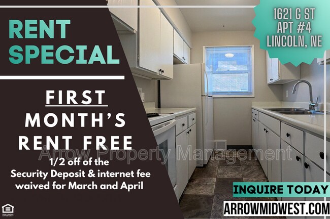 Welcome to 1621 G Apt #4, a charming one-bedroom, one-bathroom apartment located in the heart of Lincoln, NE. This apartment offers a comfortable and inviting living space, featuring plush carpet flooring that adds a touch of warmth and coziness to the home. The apartment is also equipped with ceiling fans, ensuring a comfortable atmosphere all year round. One of the standout features of 1621 G is its pet-friendly policy. Small pets are welcome here, making it an ideal choice for pet owners. Experience the perfect blend of comfort and convenience at 1621 G. Please visit to apply and schedule a showing. Additional Information- Pets: Negotiable with a $150 non-refundable pet deposit and monthly pet fee. Monthly Fees: CAM Fee: $15/month Shared Utility Fee: $35/month per tenant Internet Fee: $60/month Utilities: Tenant pays for electric and gas; landlord provides water and trash service. All Arrow Property Management residents are enrolled in the Resident Benefits Package (RBP) for $30.00/month which includes liability insurance, credit building to help boost the resident’s credit score with timely rent payments, our best-in-class resident rewards program, and much more! More details upon application. Amenities: carpet flooring, small pets welcome, ceiling fans