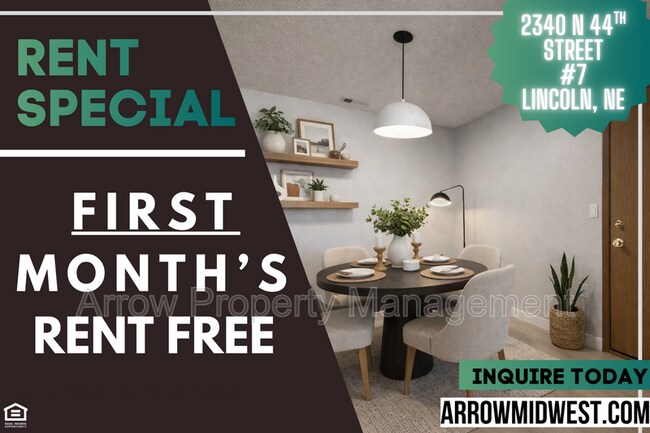 Welcome to 2340 N 44 apartment #7, a charming 2-bedroom, 2-bathroom apartment located in the heart of Lincoln, NE. This pet-friendly unit features a private balcony perfect for enjoying the outdoors, a dishwasher for easy clean-up, and off-street parking for convenience. With large closets and spacious bedrooms, there is plenty of room for storage and relaxation. Situated near East Campus, this apartment offers a prime location for easy access to shopping, dining, and entertainment. Don't miss out on the opportunity to make 2340 N 44 your new home sweet home. Visit to apply and schedule a showing. Additional information- Pets negotiable with a $150 non-refundable pet deposit and monthly fee per pet. Unlimited laundry use at $10/month per bedroom and Shared Utility Fee at $20/month per bedroom. Tenant pays gas and electric; landlord pays water and trash. All Arrow Property Management residents are enrolled in the Resident Benefits Package (RBP) for $30.00/month which includes liability insurance, credit building to help boost the resident’s credit score with timely rent payments, our best-in-class resident rewards program, and much more! More details upon application. Amenities: off-street parking, dishwasher, balcony, shared laundry facilites, stainless steel appliances, modern updates, 2 bathrooms, small pets welcome