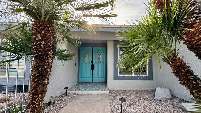 Spacious 4-bedroom, 2-bath single-story home with approximately 1,858 sq ft on a 7,405 sq ft lot. Functional layout with a bright living area and custom stone and quartz fireplace.Kitchen features recessed lighting and quartz countertops, with matching finishes in the bathrooms. Interior includes updated windows, an oversized backyard slider, luxury vinyl plank flooring, carpet, ceiling fans, and window coverings. Laundry area with washer and dryer is located in the garage.Fully fenced backyard with private in-ground pool and landscaped yard featuring a small lawn, bamboo, Texas privets, and citrus trees, all on an irrigation system. 2-car attached garage with epoxy floors, installed electric vehicle charger, and RV parking. Solar panels help improve energy efficiency and reduce power costs.Convenient Boulder City location near Lake Mead, Hoover Dam, and local amenities.