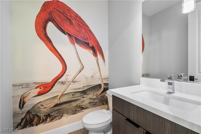 Nestled within its own serene canyon, surrounded by picturesque foothills and desert landscapes, this gated community stands as the crown jewel of Henderson. Step inside to discover a spacious open plan that exudes a sense of grandeur, featuring generously sized bedrooms with upgraded ceiling heights and doors, creating an atmosphere of luxury. The kitchen is a masterpiece of modern design, adorned with exquisite waterfall quartz countertops, stainless steel appliances, and a massive pantry. The dwelling boasts a full bed suite downstairs, complete with a walk-in closet and a private bath featuring an upgraded tile step-in shower. Every bath is beautifully appointed with modern cabinetry, while the primary bath is a true spa experience, The abundance of outdoor living spaces includes two balconies, a courtyard, and stacking doors leading to a welcoming patio area. Embrace the tranquility and splendor of life in this stunning haven surrounded by nature's beauty.