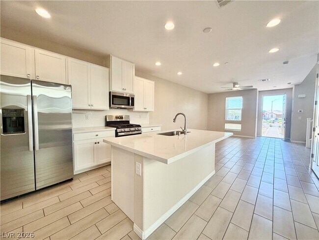 Newly built 3 bedroom, 2.5 bathroom townhome in the Cadence master-planned community in Henderson. Functional open layout with ceramic tile downstairs and carpet upstairs. Kitchen features stainless steel appliances, ample cabinetry, and opens to the living and dining areas. All bedrooms are upstairs, including the primary suite. Tenant responsible for electric, gas, water, and sewer and must place utilities in tenant’s name with verification provided upon request. Landscaping maintenance is tenant responsibility. Rent includes solar benefit, trash service, and Resident Benefit Package. Alarm system can be hooked up by tenants if they want to start service. Cameras may be removed prior to M/I date. Electronic door lock as-is. Tesla Charging station available for tenant use for additional $250 deposit otherwise will be removed prior to M/I. All measurements deemed reliable but not guaranteed. Please excuse our dust - home will be professionally cleaned prior to move-in.