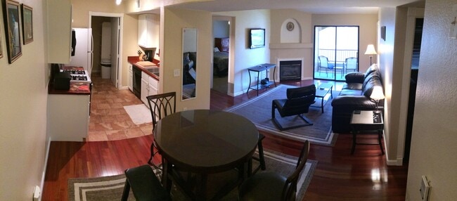 Month-to-month, furnished rental offering the very best alternative to hotels, located in the upscale neighborhood of Seven Hills. Modern 2 bedroom, 2 bath condo renovated with real Brazilian Cherry hardwood floors and countertops. Includes utilities and wi-fi. Comprehensively supplied with housewares, kitchen wares, linens, and towels. The unit possesses vaulted ceilings, a private patio, and a private laundry room with your own washer and dryer. Furnished with a contemporary flair. Located at Horizons at Seven Hills, a gated community that includes a pool, jacuzzi, fitness room and clubhouse. Notable Seven Hills residents include boxing legend Mike Tyson and eBay founder Pierre Omidyar. The world famous Rio Secco Golf Club, home of the Butch Harmon School of Golf, is located, depending on your length off the tee, 3 or 4 solid drives away. Located within walking distance are public parks, hiking trails, tennis, volleyball and basketball courts, and much more. Fantastic restaurants, markets and shops are located one mile away on Eastern Avenue. Green Valley Ranch Resort, Spa and Casino and The District are located 3 miles away. The M Resort, Spa and Casino is located 4 miles away. The fabulous Las Vegas Strip is easily accessible by car in 15 minutes. All utilities included with reasonable use. Security deposit and and exit cleaning fee apply. 30 day minimum stay required by law.