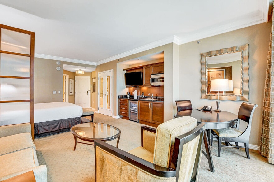 The advertised rate of $3,752/month is the lowest available price, based on a 30 day(s) stay with a move-in date of August 3, 2026. Rates vary depending on the duration of stay, season, and other parameters. For exact pricing and additional pricing components, please visit our website and enter your desired move-in and move-out dates. The rate is applicable when billed upfront; it can be higher if billed in multiple payments. Welcome to the Signature MGM condo-hotel, where you can enjoy access to all the fantastic amenities at MGM Grand and MGM Signature, including the MGM Grand Pool and Wet Republic. Located just a block away from the vibrant Strip, this property offers spacious rooms at incredible prices. You can easily reach the MGM Grand via a series of walkways, and the monorail station is just a short stroll away. Escape to your 550 sq ft suite and experience sweeping views of the Strip. This polished condo features a kitchenette, marble bathroom with a private whirlpool spa tub and separate shower, microwave, dishwasher, entertainment center including a flat-screen TV, pool, and fitness center. The property is air-conditioned, with free Wi-Fi featured throughout and free private parking available on site. Free valet parking is available for guests at the Signature MGM. Las Vegas Strip is a great choice for travelers interested in shopping, nightlife, and entertainment. The Strip, which includes numerous restaurants, nightclubs, and shopping venues, is half a mile from the property. McCarran International Airport is 1.9 miles away, the Colosseum at Caesar’s Palace is 0.9 miles away, and Henderson Amphitheater is 11 miles away. Check-in may involve a wait, so it is recommended to arrive early to maximize your stay. The hotel requires a refundable deposit for incidentals upon check-in, and the front desk only accepts debit and credit card payments. No smoking and pets are not allowed. The person who makes the reservation must be present to check-in with ID. Early check-in and late check-out are subject to approval and/or fees. Guests must be 21 years or older. Registration Number: 200009.429 [SI]
