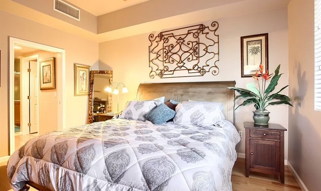 People with a sense of style will appreciate this upscale contemporary condo in new and quiet, upscale complex in Las Vegas--just minutes south of the strip and the airport. Cable, internet, gas, water, trash, and great amenities all included! Beautifully set up with upscale furnishings, the living room and dining area/breakfast bar have comfy seating, and large, flat-screen TV's with cable. The bedrooms feature high-end linens, down pillows, and great recessed lighting with dimmers throughout. Elevator takes you to this third-floor unit offering added privacy and treetop views. The stocked gourmet kitchen offers all the usual supplies and much more with high-end appliances including a stainless-steel refrigerator, ceramic cooktop, dishwasher, disposal, microwave and convection oven, plus plenty of nice glassware, dinnerware, flatware, serving pieces, pots, pans, baking dishes, knives, and plenty of storage. Fully secure with gated entrance. There is assigned parking in the garage. Wonderful indoor/outdoor pool, tennis court, gym and other great amenities are all available for your to use. Pets allowed with a refundable pet deposit. $200 complex move-in fee may apply.