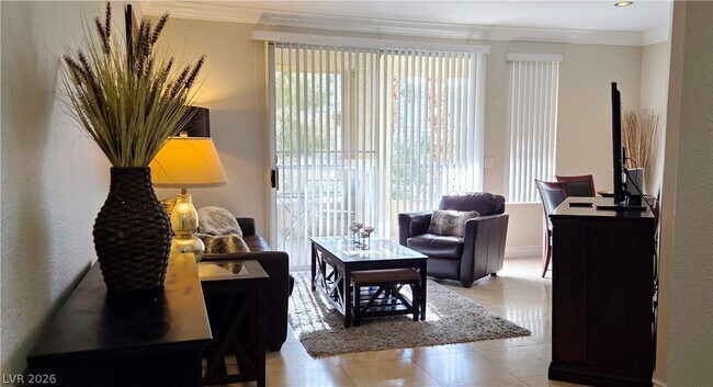Beautiful, fully furnished, strip view 1 bedroom condo at the guard gated Meridian Private Residences. Condo features upgraded stainless steel appliances, linens, kitchen items, etc. Close to pool. 2 building elevators, patio faces the LinQ, the High-Roller, and The Venetian. Small pet under 25# ok. Utilities can be included with restrictions. Listed rental price is for 1 year lease excluding utilities. This condo can be rented short term as well (3 month minimum please). Small pet under 25# ok. Please call for details
