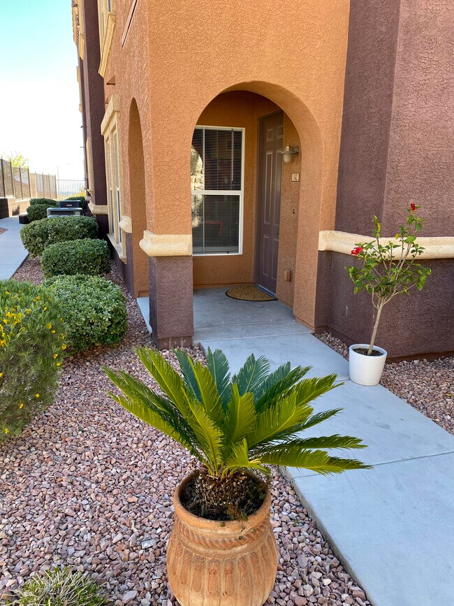Newly remodeled beautiful unit in gated community. Very bright with lots of windows and natural light, Lone Mountain view, attached 2 car garage with direct access to the unit. Freshly painted home and newly installed hardwood floor in bedrooms. Italian tile floors in kitchen, baths and laundry. No carpet! Kitchen has pantry space, breakfast nook and all appliances included. Both bedrooms have walk-in closets and ample living space. Separate laundry room with extra storage as well as an independent desk area for work or school at home. Patio off primary bedroom with water heater closet that has extra storage space. Very quite and safe community and area. Very close to shopping centers, parks, playgrounds, banks, gas station, and to the 215 Freeway. Access to 24 hours gym. Gated pool and spa. Owner pays for HOA, water and trash. Renter pays for gas and electricity. 2 months security deposit required. No smoking allowed. Small pets allowed with an extra $500 security deposit.