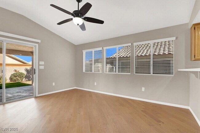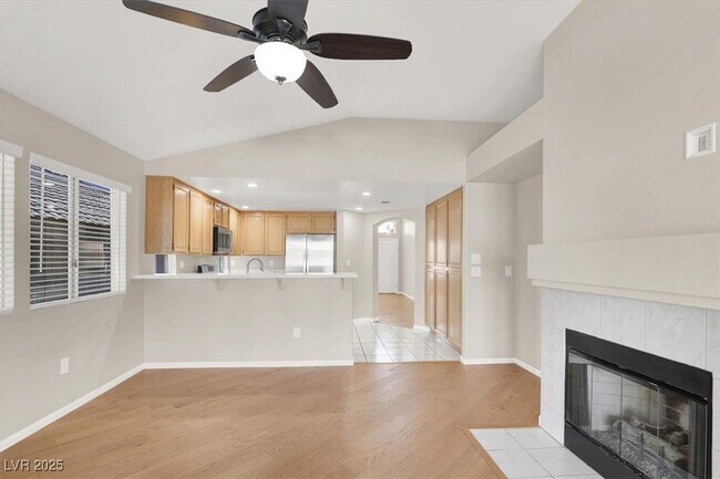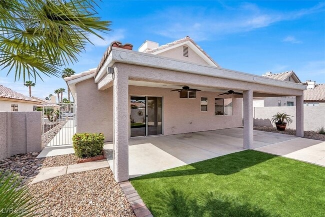BEAUTIFULLY UPDATED ND REMODELED SINGLE-STORY HOME NEAR SCHOOLS, SHOPPING, AND THE LAS VEGAS STRIP! This turnkey 3-bedroom, 2-bath home features an open floor plan with new engineered wood flooring, plush carpet, and fresh interior paint throughout. The kitchen includes all-new stainless steel appliances, recessed lighting, and quartz countertops. Formal dining and Living area. The spacious family room features a cozy fireplace, perfect for entertaining or relaxing. The primary suite includes a bath and a generous walk-in closet. Additional highlights include new blinds, updated rocker light switches, and ceiling fans throughout. Enjoy the private backyard with a covered patio featuring ceiling fans and low-maintenance landscaping—ideal for relaxing evenings. Move-in ready and centrally located with easy access to freeways, shopping, and dining!