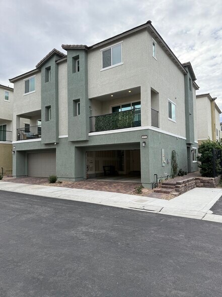 New townhome in a small gated community with great schools and local attractions. Located in the trendy South West Las Vegas area. Minutes from Ikea, Durango Casino and The UnCommons culinary hub. Walking distance to four local parks. This is a low maintenance house. It comes with solar, irrigation in the front and backyard. Two car garage with plug-in ready charging, dog park, and community pool. Easy walking to public transportation. Newly built in 2024. Free wifi and cable for six months. Pets welcome.