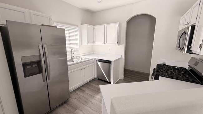 Great location, just off the famous Las Vegas Strip. This guard gated neighborhood boast 2 community pools, tennis courts, clubhouse and a fitness center. This unit was just updated with new stainless appliances, new luxury vinyl planking throughout the unit, new paint, baseboards and much more. This 2 bedroom unit has 2 baths and large open floorpan with high vaulted ceilings.