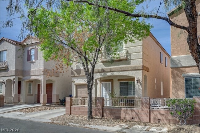 Beautifully maintained two-story home located in the desirable Southwest Las Vegas area.This property features a private, attached one-car garage with direct entry into the home, along with a gated front yard and inviting covered patio perfect for relaxing outdoors.Inside, stylish tile flooring throughout the main living areas and plush carpeting in the upstairs bedrooms.The upstairs bathroom showcases custom wood flooring for an added touch of character. The spacious kitchen offers ample cabinet storage, recessed lighting, a breakfast bar, and enough room to accommodate an island. Additional storage is conveniently located in the dining area.Upstairs includes a built-in desk ideal for a home office or study space.The generously sized primary bedroom features an en-suite bathroom with dual sinks and a sleek glass-enclosed shower.Near shopping, dining, and entertainment, this home is just minutes from Wet’n’Wild, Southern Hills Hospital, and easy access to the 215 freeway.Great Location