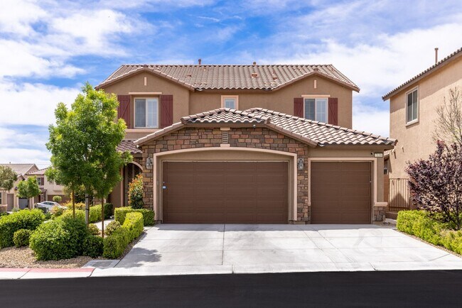 Located in a gated community with 24-hour surveillance, this well-maintained home is designed to adapt to a variety of living situations. A rare main-level multi-gen suite offers its own entrance, den, kitchenette & bedroom with backyard access—creating a true separate living space for guests or extended stays. The upper level with spacious loft, 3 additional bedrooms & a primary suite that opens to a private balcony, complete with a walk-in shower, soaking tub, bidet & generous closet. Kitchen with stainless steel appliances, granite countertops, an island & a walk-in pantry. Additional highlights include an EV charger, 8-camera security system, upper-level laundry with added storage, 2 beautiful chandeliers & a landscaped backyard with turf, pavers, & lemon, peach, orange & kumquat trees. The home is close to shopping, dining & everyday essentials—positioned between Summerlin & the Las Vegas Strip for convenient access to both. Rent includes sewer, trash & Resident Benefit Package!