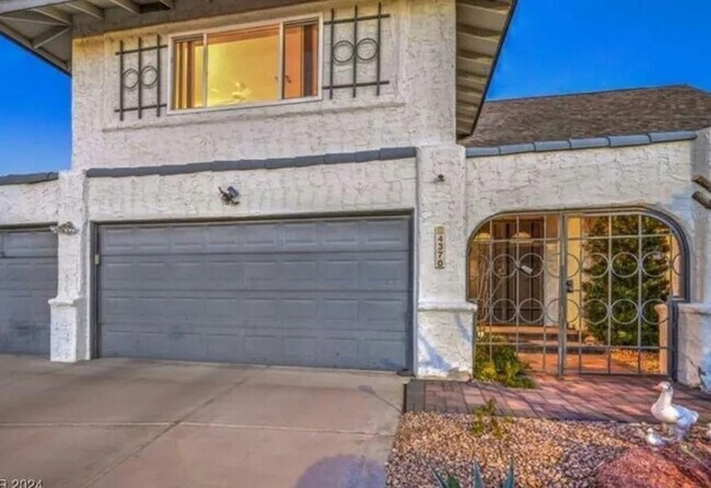 This stunning five-bedroom rental property, nestled in the serene cul-de-sac, is an entertainer's dream. Its landscaped yard, boasting mature fruit trees and ample patio space, offers the perfect setting for gatherings. Step inside to discover a comfortable living room with a cozy fireplace, ideal for relaxation. The spacious kitchen, complete with built-in appliances and ample storage, includes a six-burner stove and pantry. Hosting formal dinners is a breeze with the adjacent formal dining room. Upstairs, five large bedrooms provide plenty of space for everyone, including a primary bedroom with a walk-in closet and an oversized soaking tub in the ensuite bathroom. Plus, rare for rentals, enjoy the convenience of a three-car garage with storage cabinets. Located close to shopping, dining, the airport, the Las Vegas Strip, and the University of Nevada Las Vegas, this rental offers both luxury and convenience.