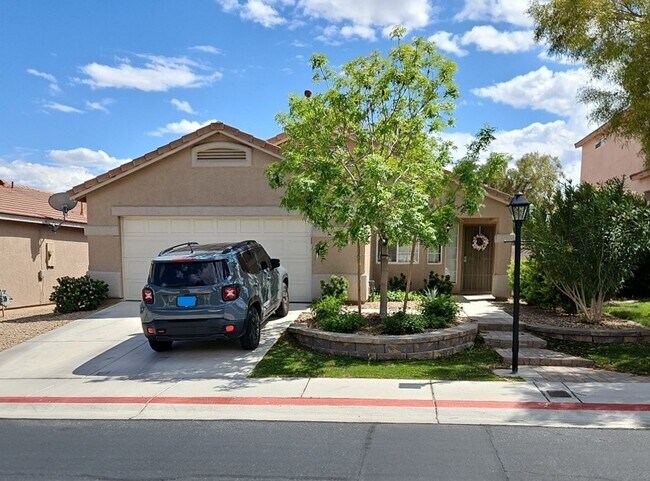 Welcome to this charming 3-bedroom home with captivating curb appeal with a beautiful front yard. Inside, discover stunning upgraded floors that flow seamlessly throughout. The kitchen boasts an inviting island and custom cabinets, perfect for culinary enthusiasts. The master bedroom impresses with ample space and dual closets, while the master bathroom offers a serene garden tub and dual sinks. Additional bedrooms are generously sized, ideal for family or guests. Outside, the expansive backyard invites outdoor gatherings and relaxation, making this home an entertainer's delight. Spring Mountain Ranch community features tennis court, sand volleyball, basketball, soccer field, playground, and picnic area. Additional park 3 doors down on Spinning Wheel. CHECK FOR APPLICATION STATUS: Allow one of our BCRG Rental Specialists to assist you in finding your next home for FREE! Black and Cherry Real Estate Group