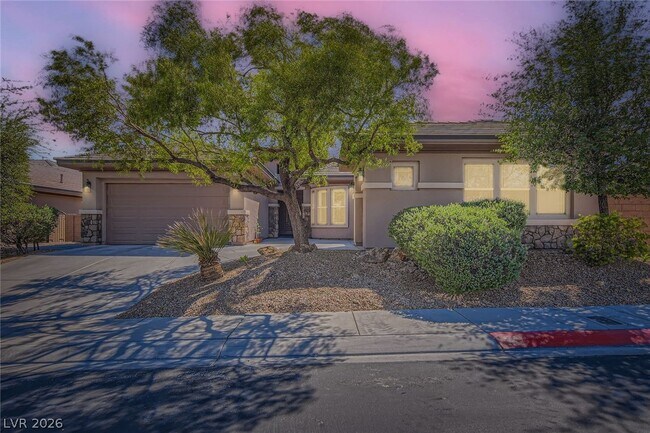 Welcome home within Club Aliante. This immaculate single story home includes an open floor plan, vaulted ceilings, hardwood & tile floors everywhere except carpeted bedrooms, w/the 4th bedroom as an optional den. The primary bedroom suite includes walk-out access to the rear patio/renovated low maintenance backyard. The interior includes a large kitchen/pantry with stainless steel appliances, double ovens, breakfast bar, ample cabinet space (throughout the home), a large walk-in laundry room w/sink & more cabinets, a 3-car garage, water conditioning system, and a built-in security alarm system. This mountain view community is close to highways, shopping, dining, entertainment and hospitals. And the guard gated 'Club Aliante' community offers a variety of amenities, including an exercise/fitness room, community pool & spa, tennis courts, basketball hoops, and more. This is an incredible community & home that won't last long; make sure to apply today (and owner will consider pets).