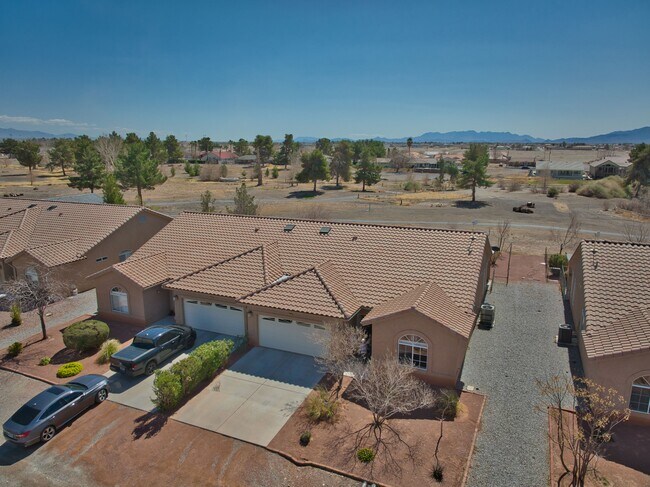 Fabulous Custom duplex on former golf course with walking paths and mountain views. Excellent condition, recently updated with new carpet and paint. Huge open kitchen with granite counters and cherry cabinets, soaring cathedral ceilings opening to family room and dining area. Fireplace in Family Room. Master bedroom has a walk-in closet, granite tops and en-suite bathroom. Skylight in master bath. Wood blinds throughout. Second bathroom has granite counter tops and tub/shower combination. Separate laundry room with Washer and Dryer. This spectacular unit feels spacious. Large patio across rear of each unit facing the mountain views. Tranquil neighborhood. It feels like a separate home of 1.732 sf. Fully landscaped with included scheduled landscape maintenance, fenced yard and complete irrigation system in place. Enjoy watching the wild horses as they pass nearby just across the back yard fence. Observe the hot air balloons from time to time - and even watch them land in the park behind the fence when they do so...