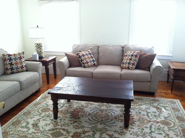 The apartment is about 750 sq ft and feels pleasant and spacious with windows on all sides, wood floors, and a wonderful private backyard shared with only one other unit. The apartment has large rooms: bedroom (13 x 15), living room (14 x 15), eat-in kitchen (10 x 17), and private storage space in the basement. A private washer and dryer are provided for you in the private basement. There is driveway parking for two cars front to back. Bathroom is small-ish with stand up shower only.