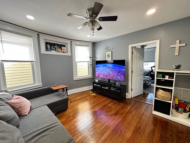 Welcome to this charming second (top) floor apartment featuring 3 bedrooms, 1 bathroom with a spacious modern kitchen equipped with a gas stove, dishwasher and in-unit laundry. Embrace the added convenience of the private 1 car driveway. The apartment was updated this year with new kitchen floors and LED high hat lighting. This home also features a large shared backyard as well as optional secure basement storage. Situated just steps from the 45th Street Light Rail Station, Costco and Stephen R Gregg Park - enjoy all Bayonne has to offer! Reach out to schedule a showing today! This listing is subject to a credit, criminal background and income verification. Owner pays water and sewer, Tenant pays electric and gas utility 1.5 month security deposit NO BROKER FEE