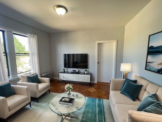 Indulge in a refined living experience with this exquisite 1-bedroom apartment, where heat and hot water are thoughtfully included. Conveniently located within walking distance to the Light Rail, this residence is an ideal haven for NYC commuters. Embrace the serenity of a clean, quiet, safe, and secure building nestled in a lovely neighborhood. Please note that pets are not allowed, and we highly recommend scheduling a personal viewing to truly appreciate the charm of this unit before completing your application.