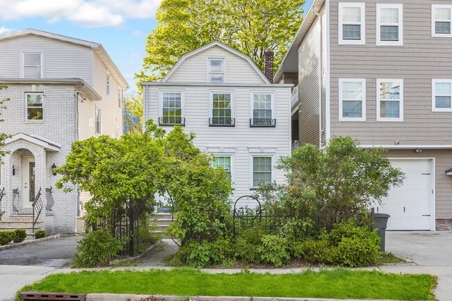 Fantastic Location! Just steps away from shops, deli, bus, and school. 2nd floor apt in a beautifully maintained three-family home. Updated 2 bedroom plus office. Main bath w/jetted tub, large rear bedroom with private balcony, and newly installed laundry closet with full-size washer and dryer. Wall unit a/c's open concept dining/living room, kitchen. The kitchen has a granite counter breakfast bar and a new full-size refrigerator. The primary bedroom has a private balcony. Ample closet space throughout(each bedroom has its own double closet). Enjoy the gorgeous private courtyard entrance and the rear outside patio that offers privacy and space for outdoor dining and entertaining. Parking for 2 + cars is provided in the exclusive parking lot located at the rear of the property.