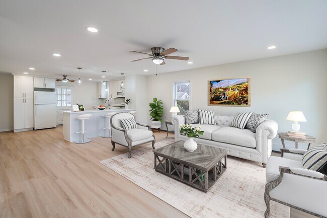 Just fully renovated! Private back entrance leads to a multipurpose/bonus room that can be used as a family room or home office, which leads to a stunning white kitchen, with quartz countertop, new spacious kitchen cabinets, and modern lighting fixtures. The bright and sunny kitchen/living room has an open concept plan with recessed lighting and new ceiling fans. Each of the three (3) bedrooms offer spacious closets and the apartment has an additional large walk-in closet for extra storage. Brand new luxury flooring and paint throughout. On-site parking for two vehicles, use of yard, and a dedicated washer and dryer included in the basement. Conveniently located within 5 minute drive/2.5 miles to New York City train park-and-ride, all major highways, and walking distance to North End Elementary School. NO PETS PERMITTED. NO SMOKING NO VAPING. $3,200 for one year lease and rent will be reduced to $3,100 mo. if an 18 month lease is agreed to at lease signing. Agent Remarks: Tenant pays gas, electric, cable. LL pays water, taxes, trash. Please use Showing Time. Do not go to the property without an appointment. Lease application with credit check required for each adult. Tenant pays broker fee. See LL requirements in MEDIA section. 2nd floor occupied - do not disturb. **Rental is the 1st floor unit of a 2-family home not the entire house.