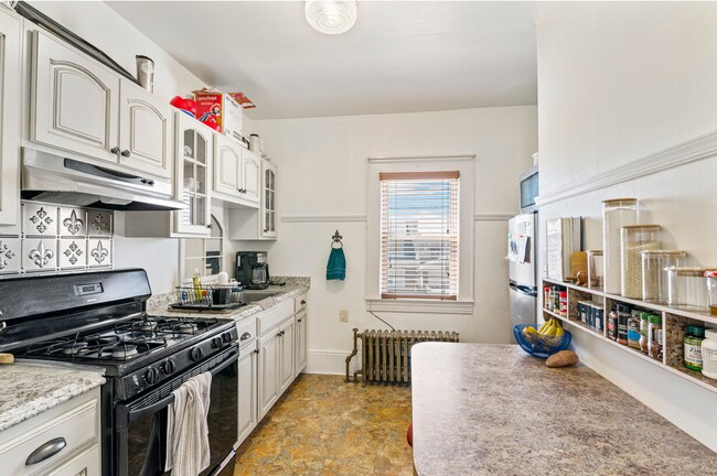 Spacious 1 bedroom 1 bathroom rental on second floor of 2-family home. Hardwood floors throughout. Large eat-in kitchen. Street parking. Close to shopping, public transportation, parks and schools. One window air conditioning unit provided. Cats OK. Gas and hot water bills are split with downstairs 2 bedroom unit - this unit pays 40%. Owner pays gas May through October. 1 month broker fee, 1.5 month security deposit and first month's rent due at lease signing