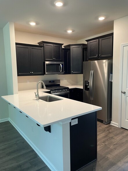 luxury townhomes in the new High Street Estates Community i built by America's Builder! This home has an abundance of designer features such as 9' Ceilings, Kitchen with upgraded cabinets, granite counter tops, large under mount sink with brushed nickel faucet , Stainless steel appliances & an abundance of recessed lights; This modern floor plan opens the Kitchen to the Dining and Living room, great for everyday and entertaining! The Powder room is conveniently located on the first floor. The 2nd floor Owner's Suite is spacious and offers a large walk in closet & Owner's bath with two sinks and luxury shower. The Laundry is conveniently located upstairs! Two additional bedrooms+ bathroom