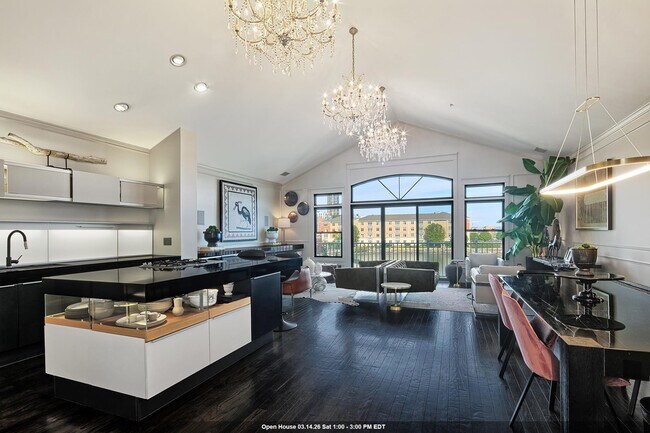 Experience luxury living on the Hudson River in this stunning 3-bedroom, 2.5-bath townhome with 2,146 sq. ft. of thoughtfully designed space. The home offers an open-concept living, dining, and kitchen area with soaring cathedral ceilings, elegant crystal chandeliers, and a cozy gas fireplace—perfect for both entertaining and everyday comfort. Modern luxury Poggenpohl kitchen features premium Gaggenau and Miele appliances, while the spacious primary suite includes a California Closets walk-in and a Lazzoni wardrobe. The spa-like Porcelanosa bathroom boasts a towel warmer, jacuzzi tub, smart toilet, and zero-entry shower. Additional highlights include a private elevator, a walk-in laundry room with a full-sized LG smart washer and dryer, a Google Nest Home with smart thermostat, keyless entry, and camera, along with custom lighting and Forbes & Lomax light switches throughout. Enjoy the rare north-facing Fulton floorplan with unobstructed views of a park with amphitheater, Hudson River and Manhattan’s Upper West Side. A one-car garage plus driveway provides two parking spaces. Nestled within Port Imperial, the community features two pools the unit overlooks a beautiful park. Direct walking access to the Hudson River Waterfront Walkway, complimentary commuter bus service, and the Guttenberg shuttle to the NY Waterway Ferry make commuting a breeze. You are steps away from the NJ Transit bus and just minutes to Midtown/Penn Station, this location offers the perfect balance of tranquility and convenience. Close to restaurants and shopping. This exceptional home with breath taking views blends modern luxury with resort-style amenities—schedule a private showing today.