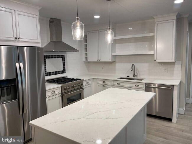 Exceptional 2 bedroom 2 bath apartment located in the heart of Haddonfield's vibrant downtown. Huge living room with 3 french doors overlooking scenic Kings Highway. Custom kitchen with island, subway tile backsplash, upgraded cabinetry and appliances, and quartz counters. Attractive Pergo wood flooring. Washer and dryer. Large finished attic