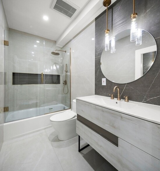 Be the first to live in this brand new renovated space. Enjoy the finest materials and designer aesthetic thru the home. In the kitchen enjoy waterfall countertops, double sinks with chef faucet, two tone cabinetry with shiplap backsplash, high end stainless steel appliances, pot filler, and all brass fixtures. Showroom bathroom with custom tile work, seamless glass shower door, brass fixtures, circle mirror framed in accent tiles, and even a heat fan to warm up these cold winter months. In unit washer dryer, full length mirrors, mini split heat and cooling system, dark hardwood floors, and closet organizers. Located conveniently on First Street for an EZ NYC commute via PATH train, parking and gym available for additional fees at Sky Club, and many restaurants, shops, bars, and parks in close proximity. Immediate occupancy, welcome home.